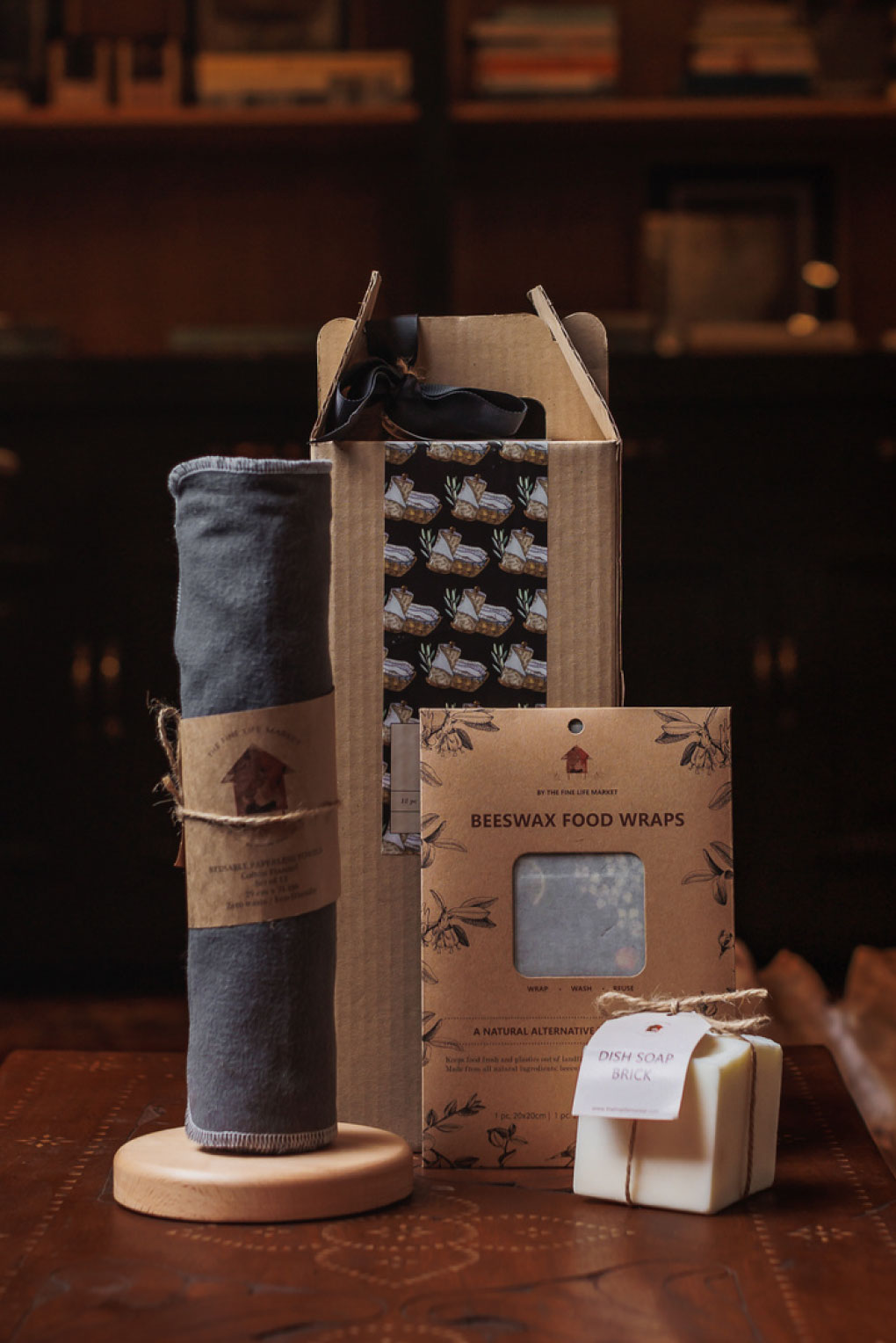 Reusable Paperless Towel with 3-pc Set of Beeswax Food Wraps Pre-Cut and Dish Soap Brick