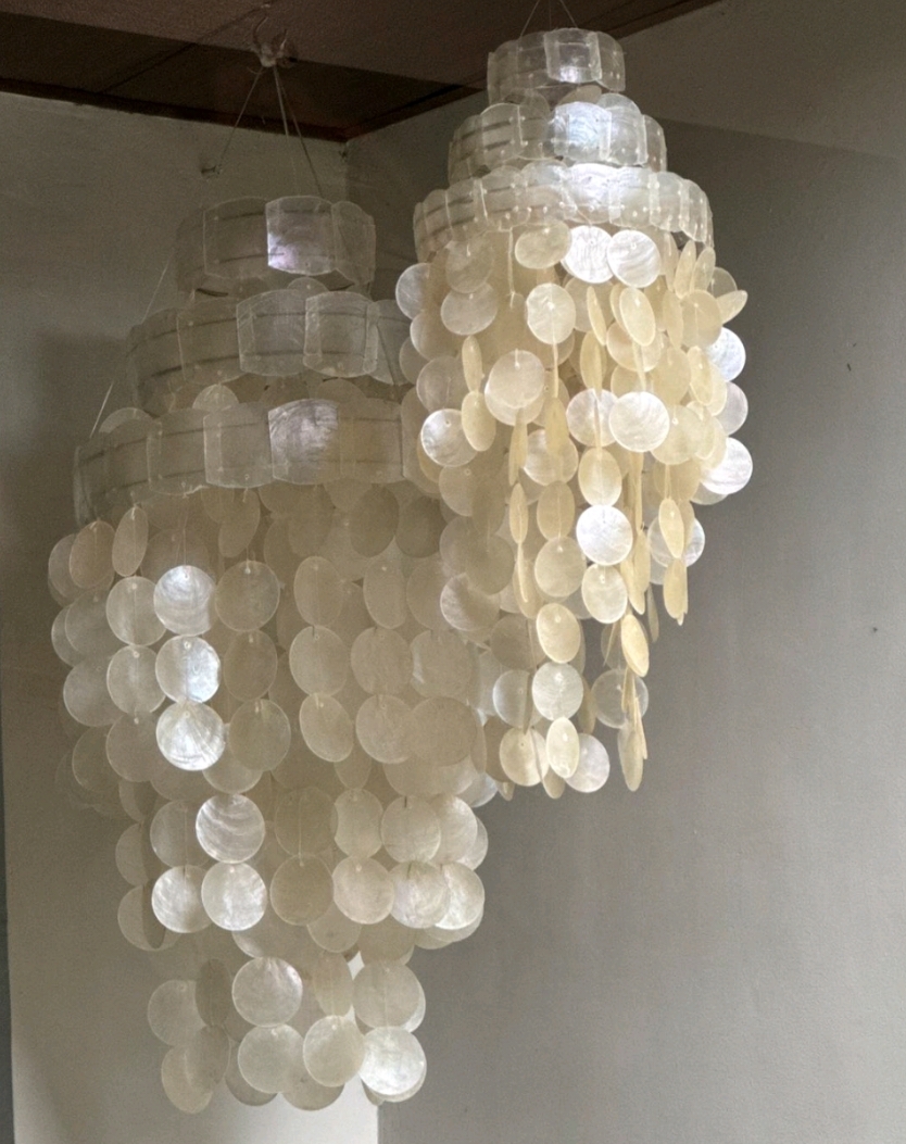 Handcrafted from natural capiz shells, this cascading lantern brings a soft, ambient glow and coastal elegance to any space. Lightweight and luminous, it’s perfect for adding texture and movement to your decor.