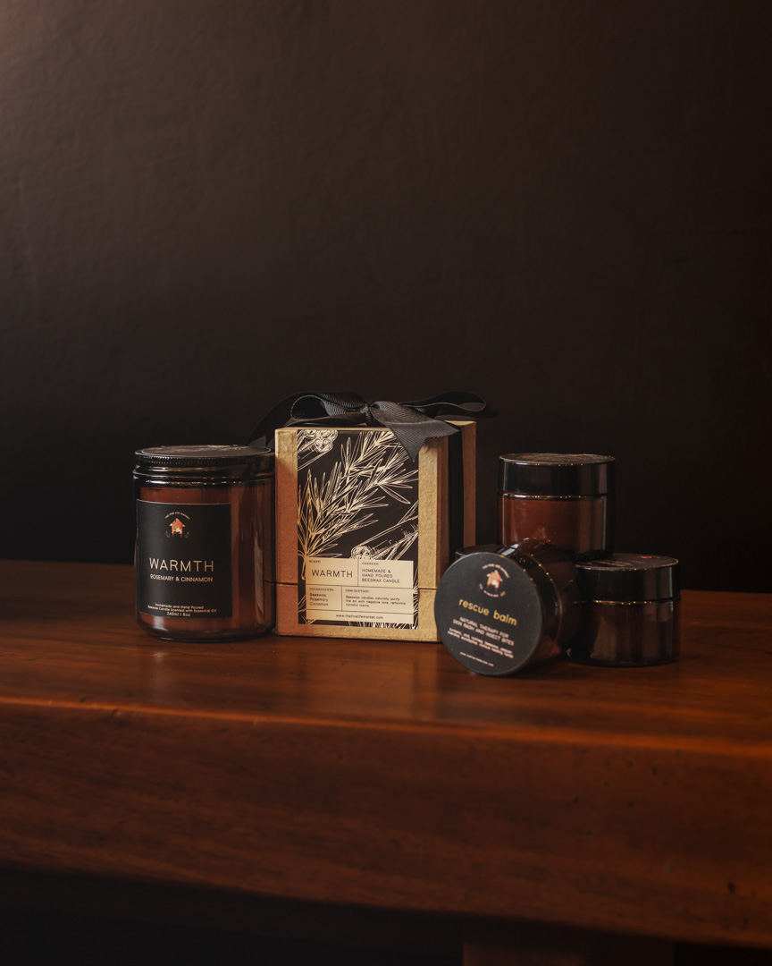 Create your personal oasis of comfort with our Scented Candle and Balm Set. This serene pairing features a 240g beeswax candle in three scents, along with four healing balms. Each item has been thoughtfully crafted to enrich your relaxation and self-care moments.